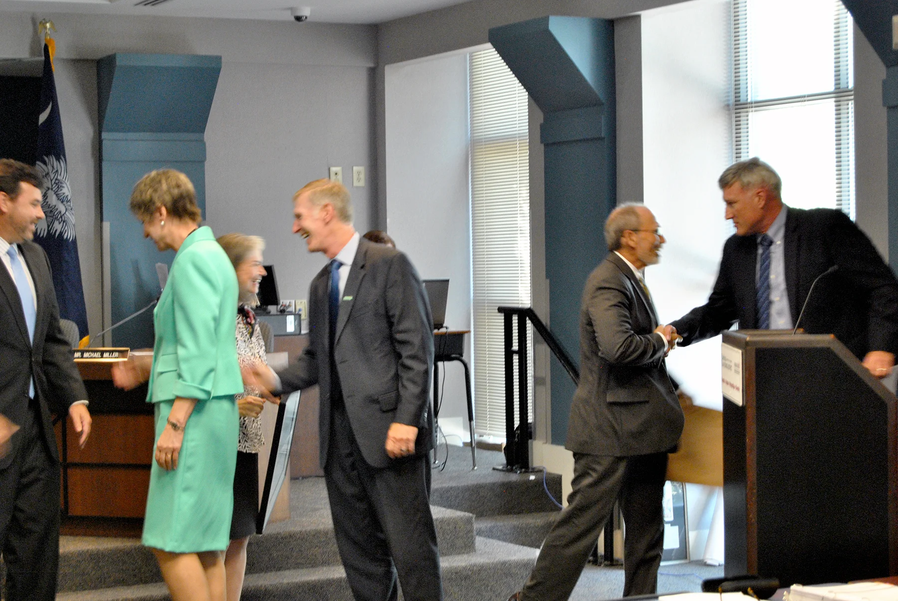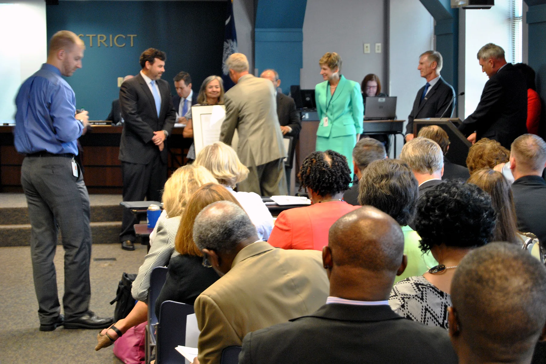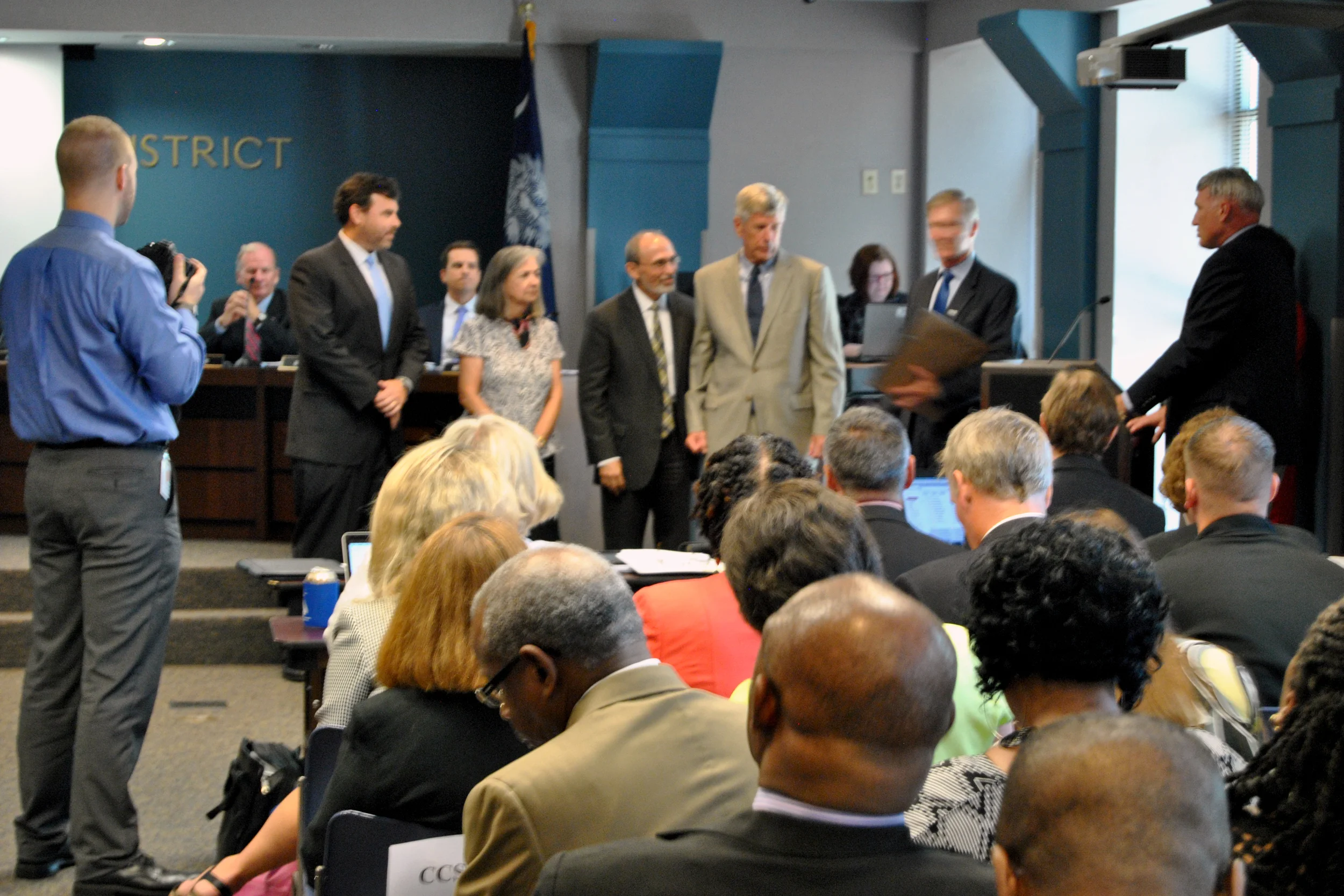 At Charleston County School District’s recent Board Meeting, held August 10, 2015, two separate awards, the 2015 South Carolina Historic Preservation Honor Award and the AIA South Carolina Merit Design Award, were presented to Liollio Architecture by Deputy for Capital Programs Jeff Borowy for an outstanding renovation of historic Charleston Progressive Academy. Mr. Bill Lewis and Mr. Michael Bobby were also recognized for overseeing this project.